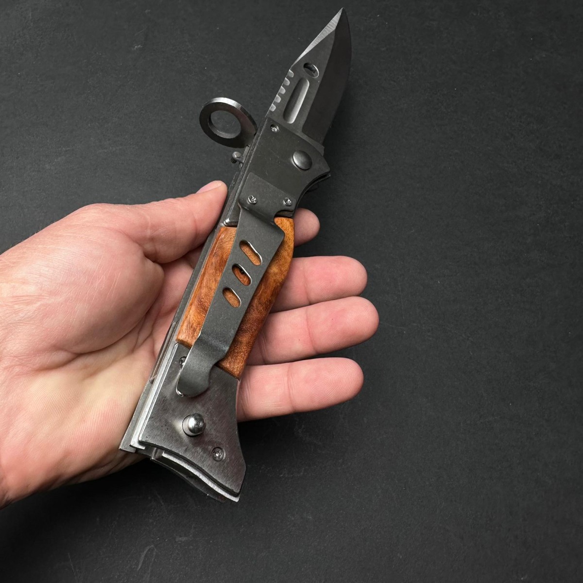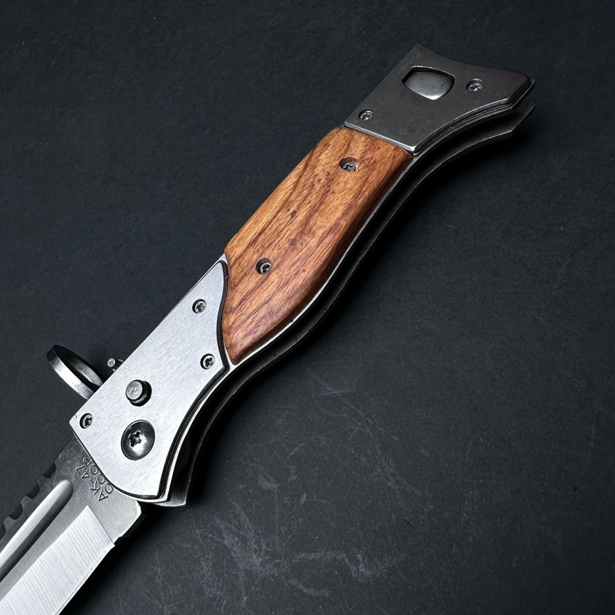 Cuțit tip Briceag Camping și Drumeție 23cm – Lamă din Oțel Inoxidabil, Mâner din Lemn Negru.Un cuțit..