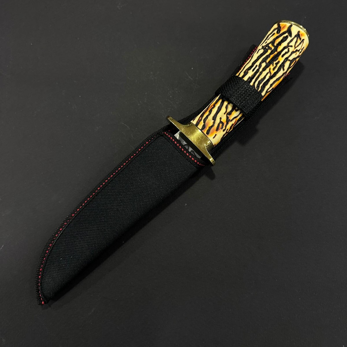 Cuțit fix compact și elegant, ideal pentru camping, bushcraft, drumeții și activități outdoor. Lama din fier forjat oferă ascuțime durabilă, rezistență la rugină și tăiere precisă, cu profil ușor curbat pentru control excelent. Mânerul ergonomic din corn cerb asigură priză sigură, aspect rustic premium și senzație plăcută în mână. Construcție solidă cu accente metalice – un companion stilat, funcțional și cu personalitate pentru orice aventură în natură.