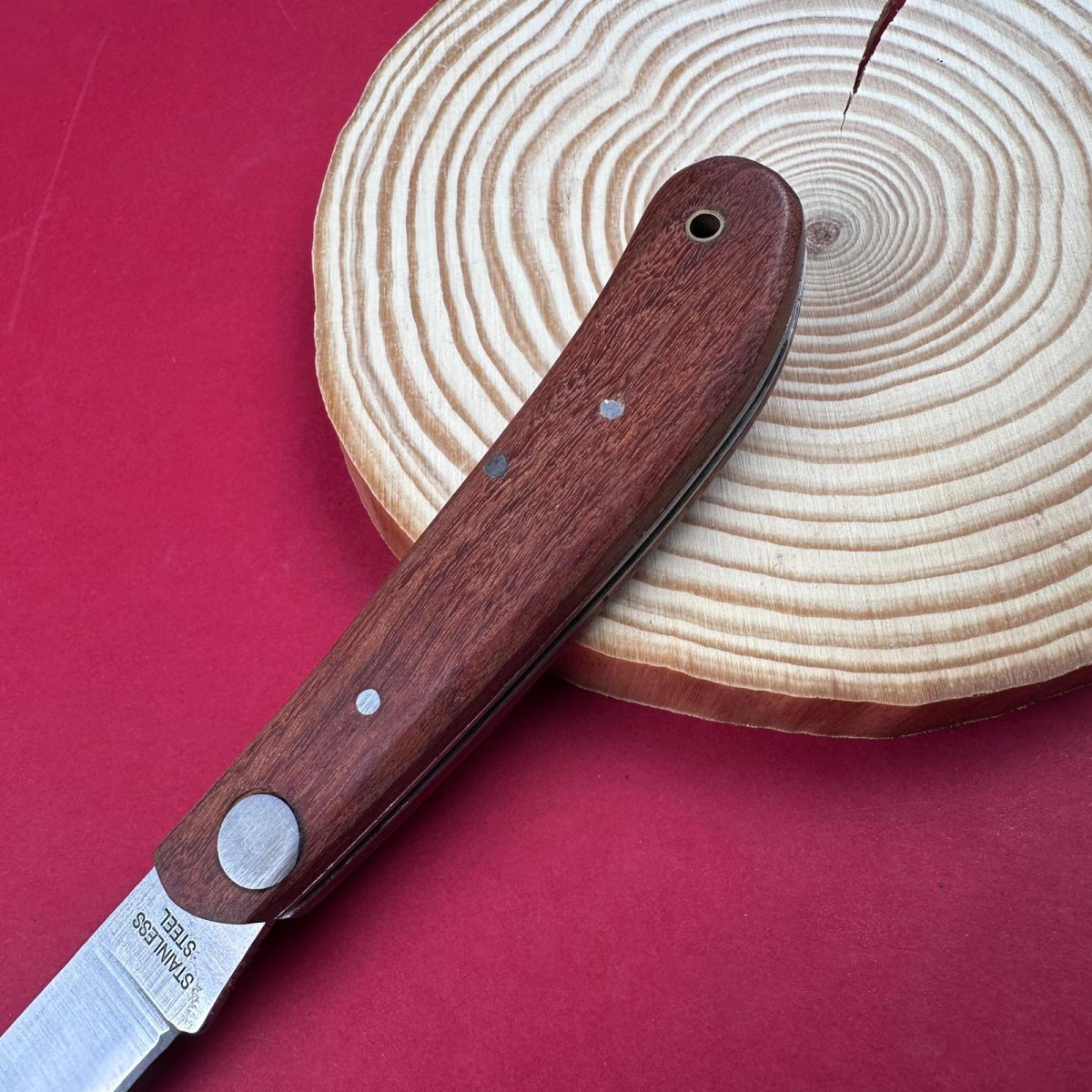 Mini cuțit de buzunar din lemn de trandafir – Lama inox, ideal hobby & camping.Cuțit mic, elegan..