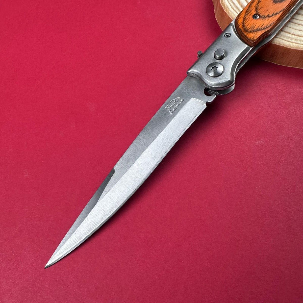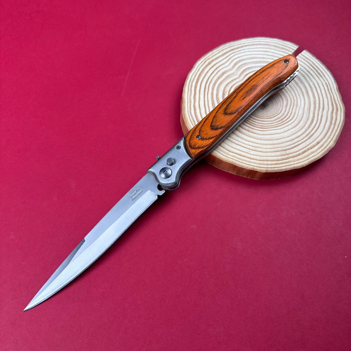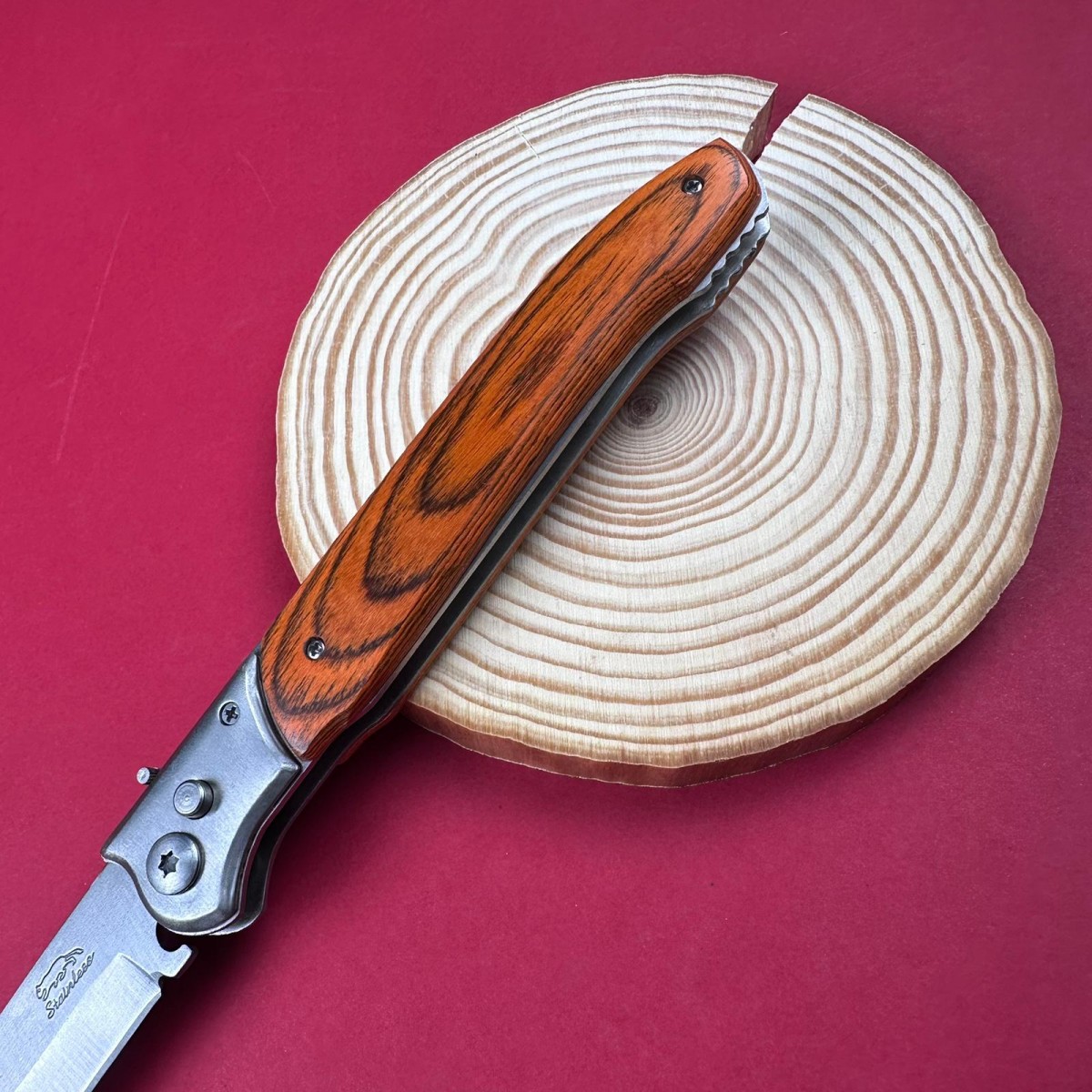 Cutit camping tip Briceag 31cm, lama otel inox, maner metal+lemn maro, cu husa FR18