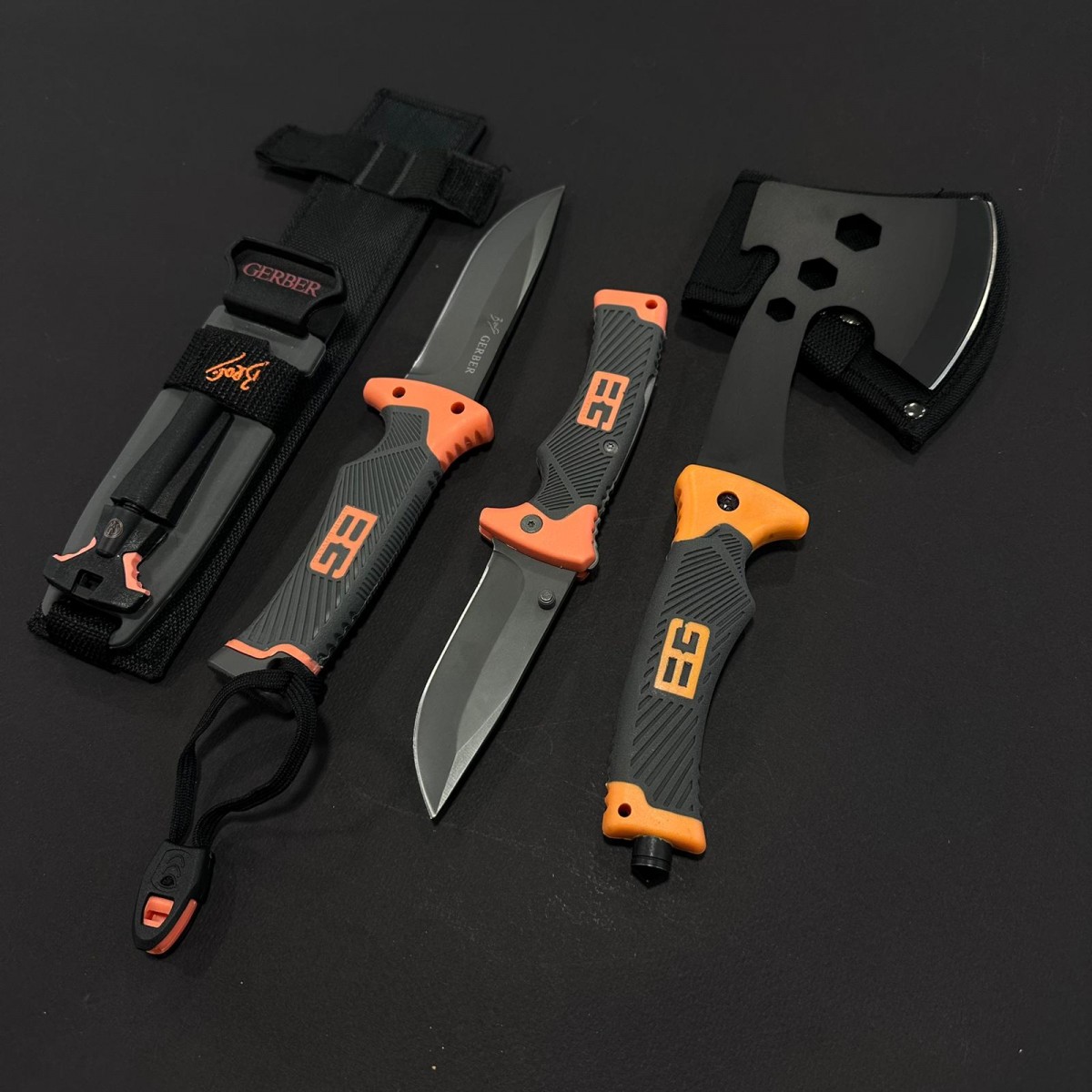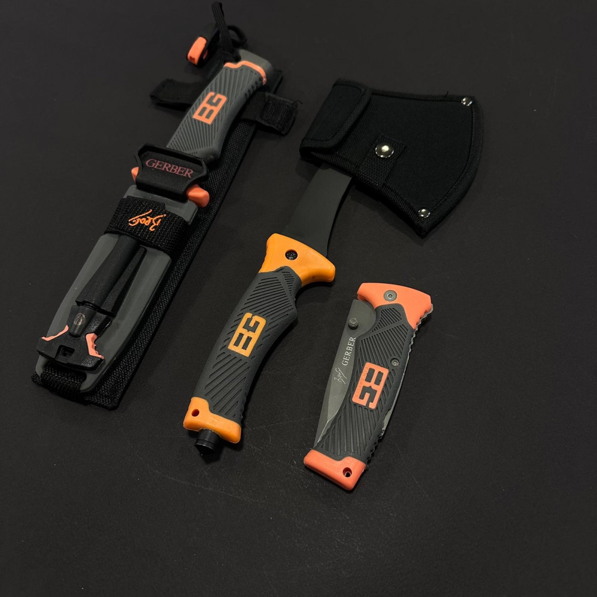 Un set Gerber de top – combinația dintre cuțitul Bear Grylls multifuncțional, toporisca practică și briceagul pliabil oferă tot ce ai nevoie pentru o aventură sigură și eficientă în natură.