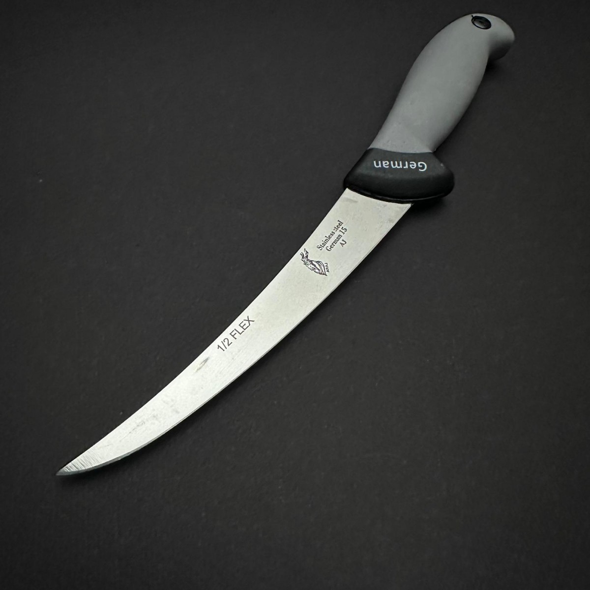 Cuțit măcelărie dezosat 34 cm, lamă lată oțel inoxidabil 1/2 FLEX, mâner silicon gri – Cod: CMDS34G-..