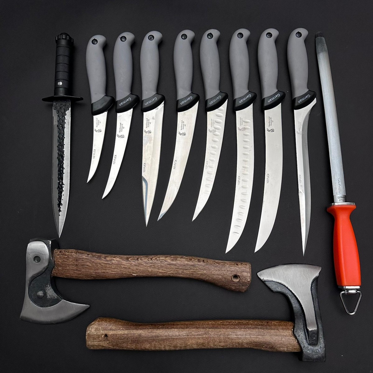 Setul contine:1buc. Toporisca despicat 34cm, lama de 11cm, coada de lemn1buc. Cutit macelarie dezosa..