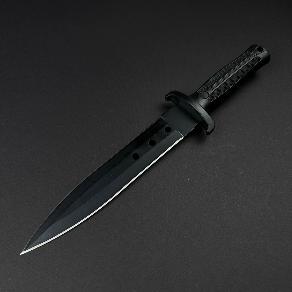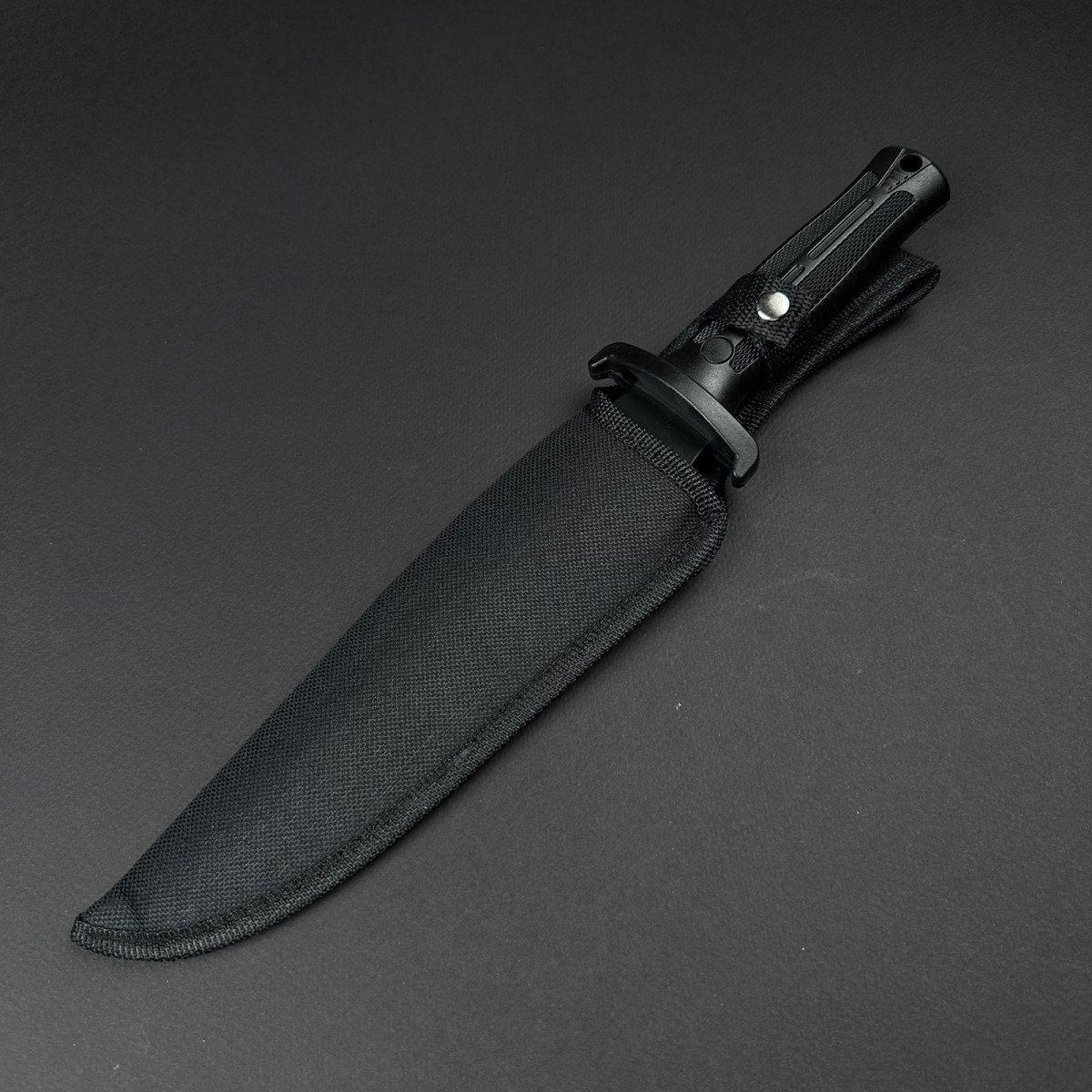 1buc. Cutit camping black 33cm, lama 18cm otel inox dublu tais, maner abs, negru