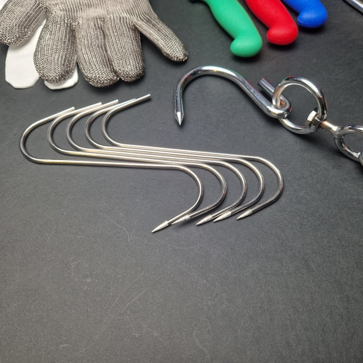 Set macelarie 12 piese, 3 Cutite, 7 Carlige diverse modele si manusa macelar