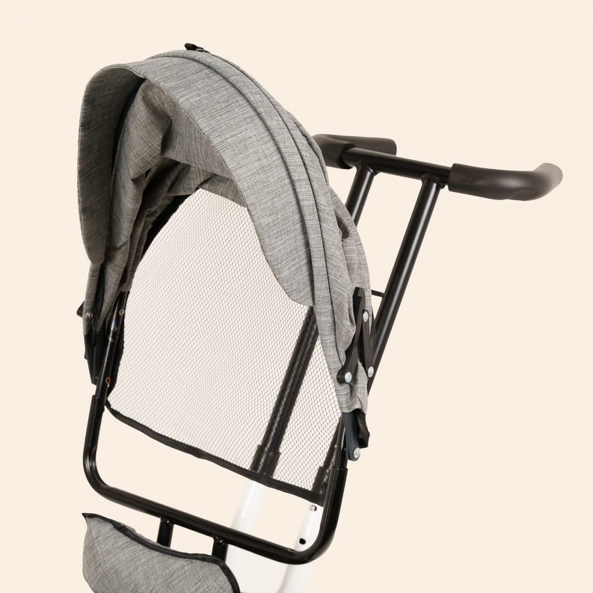 * Copertina tricicletei este reglabila pentru a gasi unghiul optim de protectie impotriva razelor solare si este detasabila