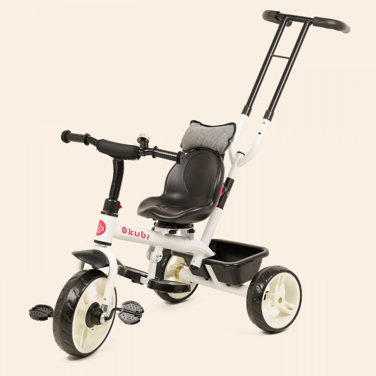 Tricicleta multifunctionala KUBI este destinata copiilor cu varsta cuprinsa intre 18 – 72 luni. Tricicleta KUBI este un model nou cu un design modern foarte usor de manevrat de catre adult si copil si confortabil pentru copilul dumneavoastra.