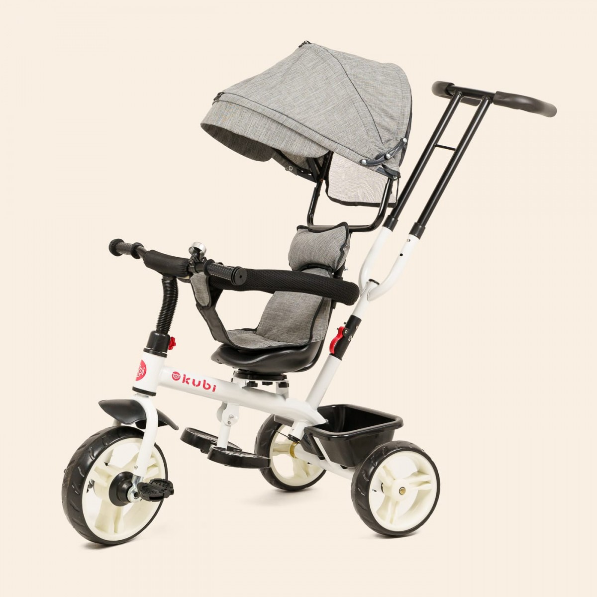 Tricicleta KUBI, 5 in 1, ghidon reglabil, scaun reglabil rotativ 360 grade, gri